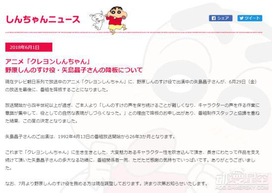 为蜡笔小新配音26年的矢岛晶子宣布隐退 谁能接替? |