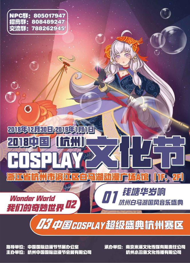 温馨提示: 第十五届中国COSPLAY超级盛典全国平面大赛将于2019年1月开启。杭州赛区团队赛将于2019年4月开启。具体时间、奖项另行通知,请大家及时关注官方网站、微博及公众号的动态更新~ 官方公众号关注传送门↓: