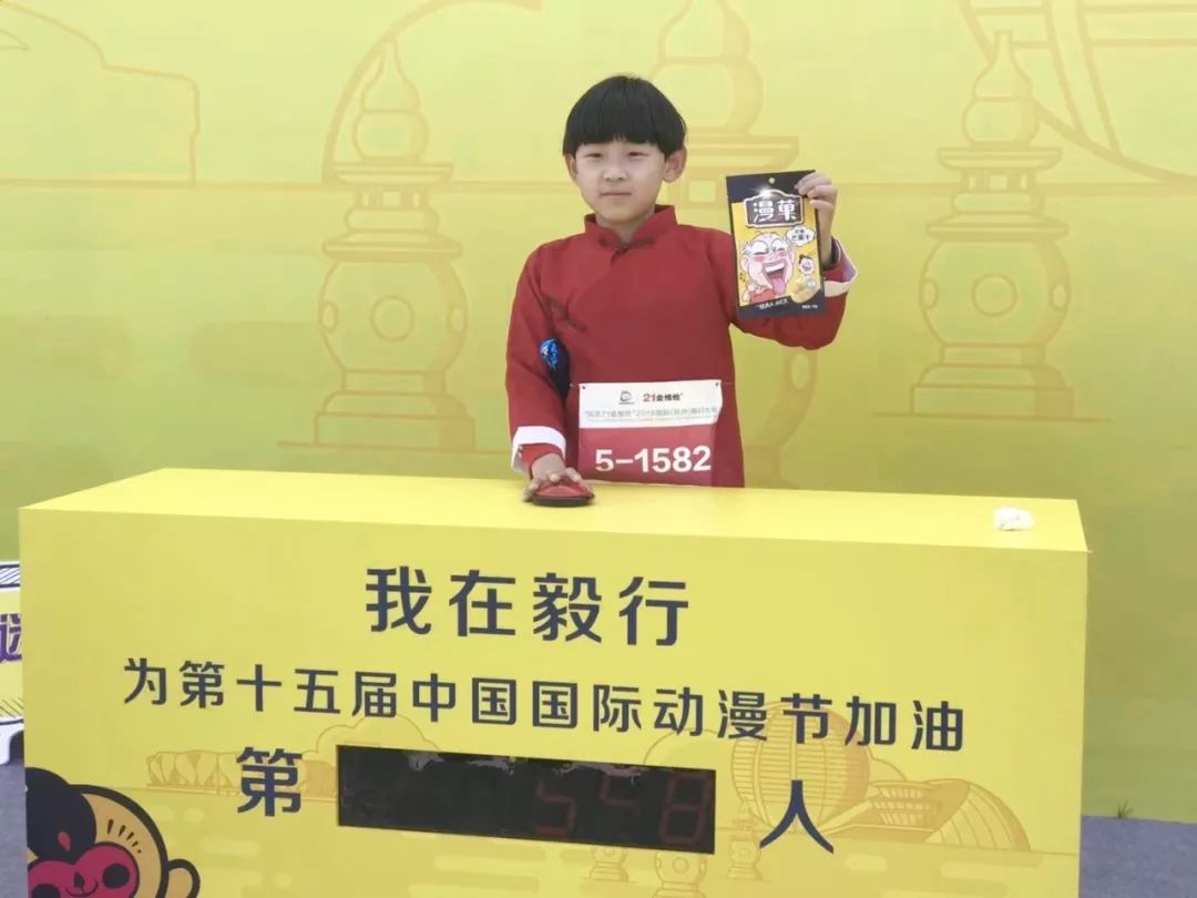 由毅行选手们共同涂画完成的涂鸦墙 让大家惊喜的是,今年,动漫毅行对女选手和未成年选手格外优待,完成比赛获得证书的选手们可以到动漫服务台领取一份特殊福利——由杭州友诺文化创意有限公司独家赞助的经典华语漫画IP“乌龙院”主题礼品,不仅有好吃的动漫零食,还有酷炫的乌龙院环保袋。