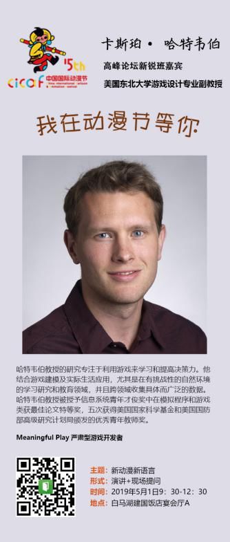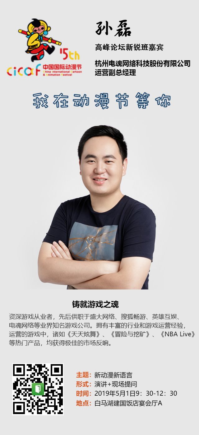 他是严肃型游戏开发者 专注于利用游戏来学习和提高决策力 他拥有丰富的行业和游戏运营经验 作品屡获市场好评 5月1日9:30—12:30 建国饭店宴会厅A “新锐班”将如期开班 围绕“新动漫新语言”主题 共享动漫游戏前沿理念 今天,国漫君再带你 认识下其中的2位嘉宾