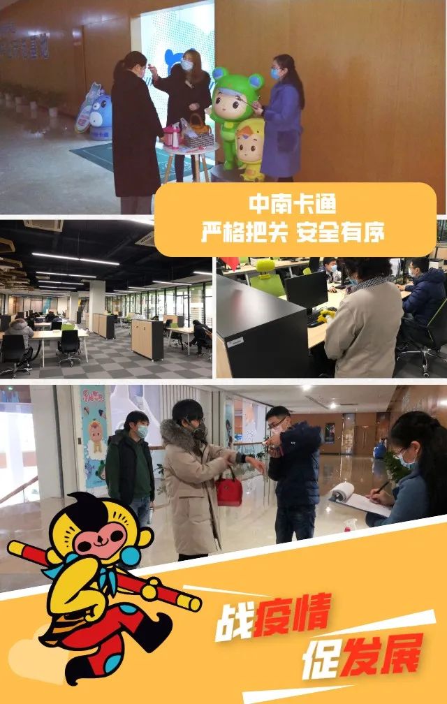 2月17日,中南卡通正式吹响了复工复产“集结号”,针对复工人员有严格的上岗要求。不仅有预先填报的信息采集、签订承诺书,而且复工后坚持动态“一日一报”制度,严格把关办公场地的出入情况。同时,通过设立“废弃口罩专用回收桶”、为员工统一配送餐食等方式,避免复工后的交叉感染。