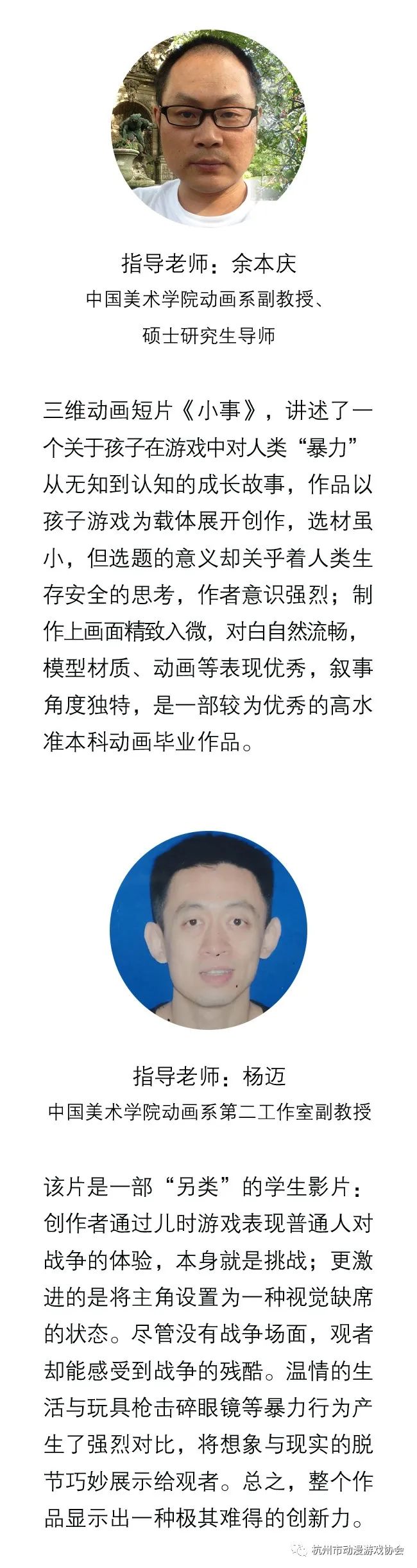 | 今年5月,中国美术学院传捷报,该院2019年毕业生创作的动画短片《小事》取得了明年奥斯卡金像奖的竞赛资格。这件作品由李泽熙和他的三位小伙伴合作,一年前,他们完成毕业创作《小事》并频获嘉奖,完结了人生中毕业的大事。一年后,作为校园骄子的他们,在市场风雨中经历了什么?让我们一起欣赏佳作、走进创作的背后。 剧情概要 一个夏日的寻常午后,几个孩子在村里玩耍。 喜欢玩枪战的他们无意间捡到一把仿真枪, 村子里一派安详宁静,小孩扔掉地瓜皮,黄狗好奇地闻了闻。 一个男孩好奇地扣下了扳机。 图片 枪声响彻林间,惊飞了技上的鸟儿。 图片 晚上,老电视里播放着战争中原子弹爆炸的纪录片。 战争的残酷和毁灭性,让孩子们看傻了。 导演创作解读