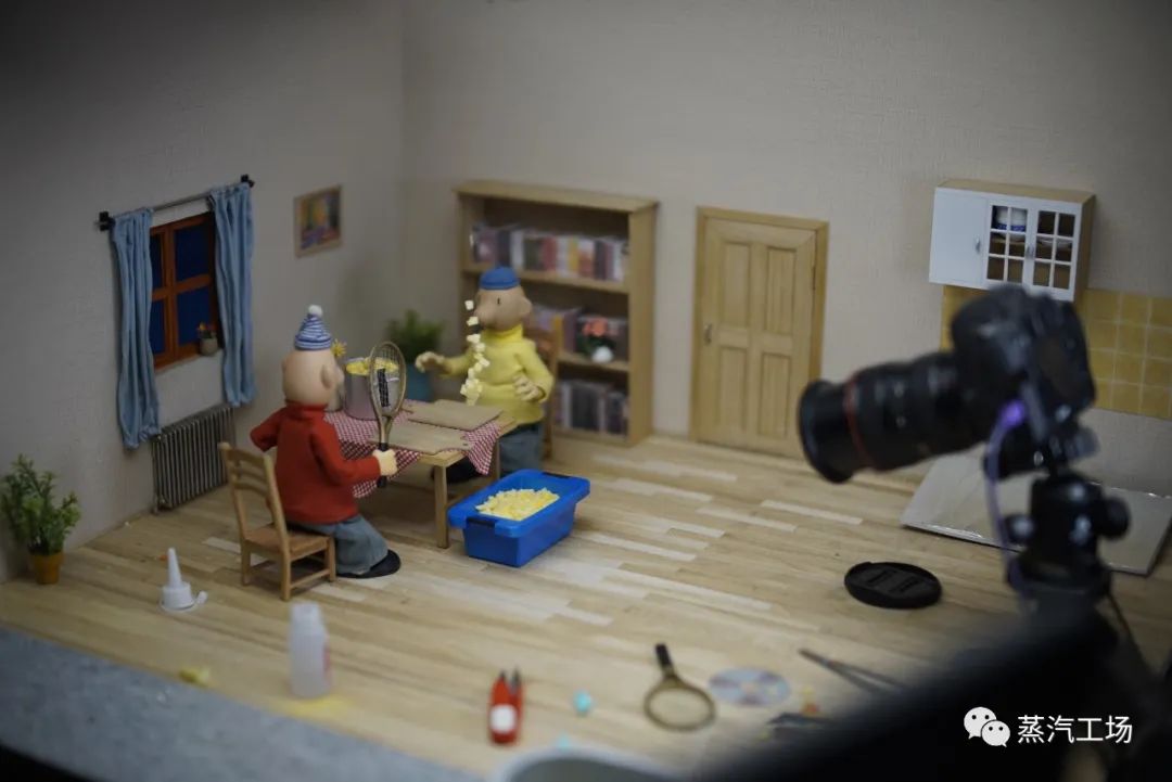 此前,该影片在上海国际电影节已入围“最佳动画电影”,在中国国际儿童电影节上被300位小朋友评选为“我的最爱动画电影”,并在柏林国际电影节儿童青少年单元获得“最佳卡通电影特别奖。 在CG动画大量普及的今天,影片《呆瓜兄弟》所采用的定格动画技术绝对是别具一格的存在,这部由杭州蒸汽工场文化创意有限公司耗时三年制作出来的电影,能让在观影过程中收获一种最真实质朴的画面感。 02.《呆瓜兄弟》幕后制作诞生秘辛 对定格动画稍有了解的小伙伴们,都会知道其制作非常不易。今天,国漫君就在这里给大家透露一下《呆瓜兄弟》的制作过程吧。 △《呆瓜兄弟》制作特辑预告 阿呆和阿瓜的生活场景非常写实,蒸汽工场在制作时大量参考了现实中真实存在的生活用品。