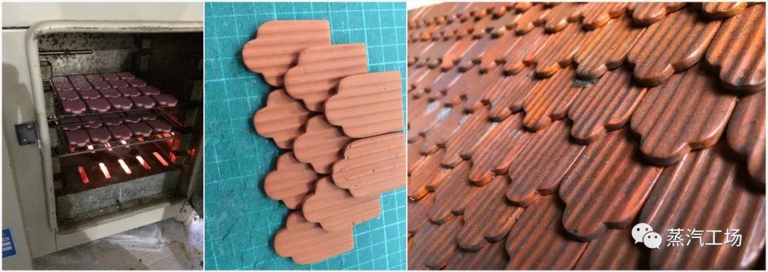 ▲烧制的瓦片: 为了让瓦片的砖红色更写实,所有的瓦片都由道具师用陶泥制作,烤箱烧制而成的,共制作了3000多片瓦片。