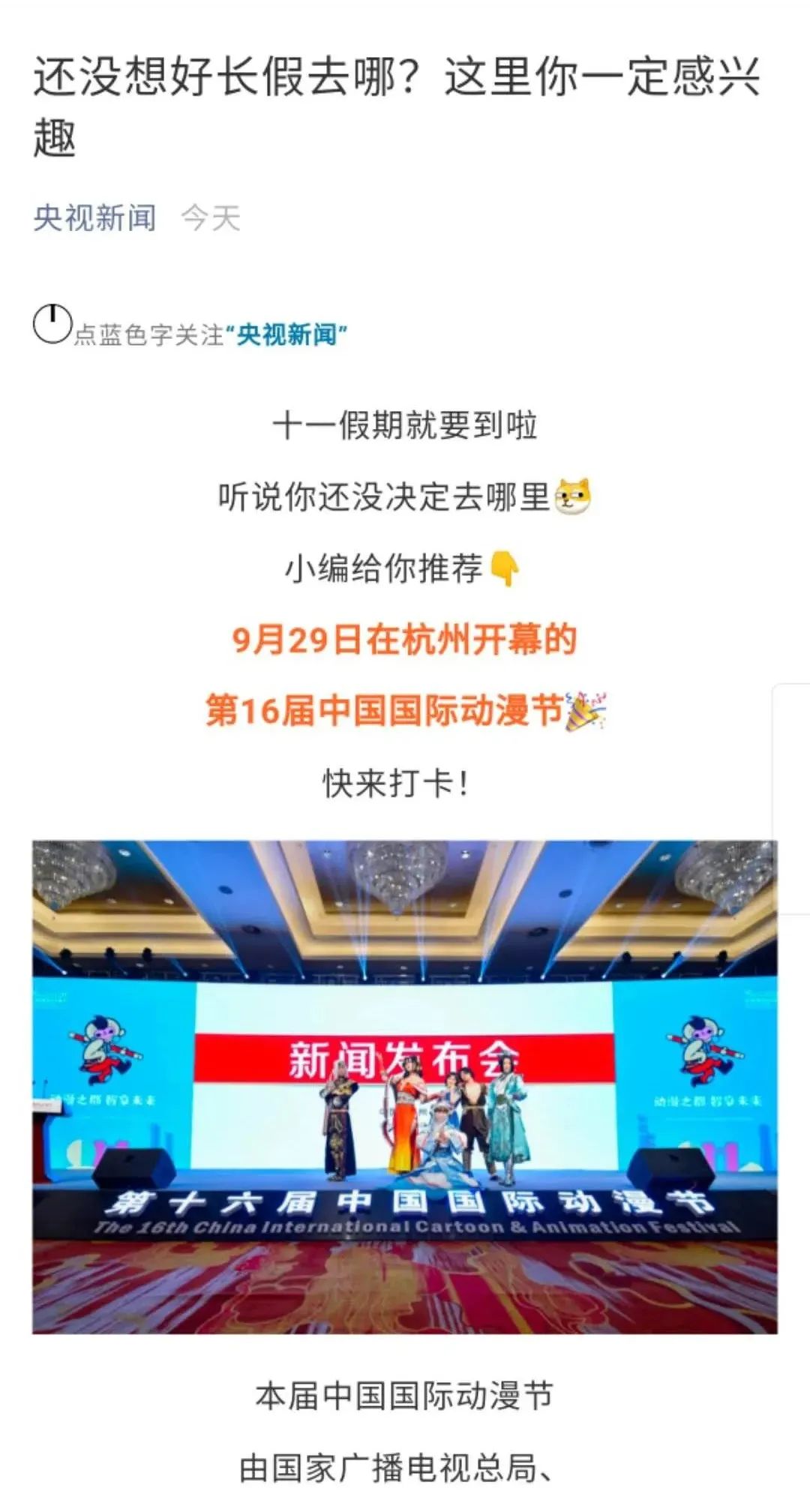 跟着总台央视入圈,动漫节看“浙”里! 第十六届伟德安卓版下载官网安装开幕啦!近几日,国漫君发现在央视刷到了好多国漫的身影!▽无论是在电视里9月28日“经济信息联播”(来源:央视影音)9月29日“朝闻天下”(来源:央视影音)9月29日“新闻直播间”(来源:央视影音)▽还是在票圈里(来源:央视新闻)中央广播电视总台是首次以主办方身份参与举办,必将进一步提升伟德安卓版下载官网安装的权威性和传播力、影响力。在央视看动漫节也太酷炫了! 2020年09月29日