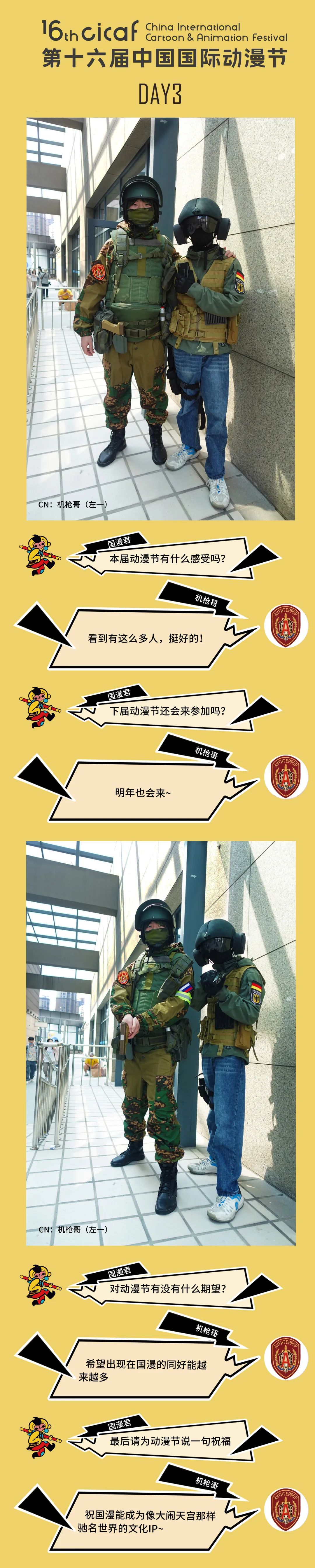 Day3 | 双节假期第一日!来pick你心中的今日最佳吧! 今天是国庆假期的第一天,动漫节也迎来了人流高峰。现场精彩多多,快来看一下今天的街采吧!除了街采外,国漫君还给大家带了许多现场照片。到10月4日动漫节结束还有三天,还没来的小伙伴们要抓紧咯!明天我们继续不见不散! 2020年10月01日