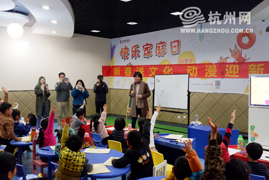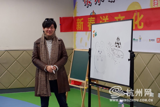 | 杭州网讯 1月4日上午,杭州图书馆特别的热闹,不时传出大人和孩子的笑声,引得路过市民各个驻足探头往里看。 是什么让在场的家长和孩子如此开心?原来是知名漫画家十九番化身“番叔老师”,为在场的孩子们带来了一场特别生动且极富趣味性的动物绘画课程。