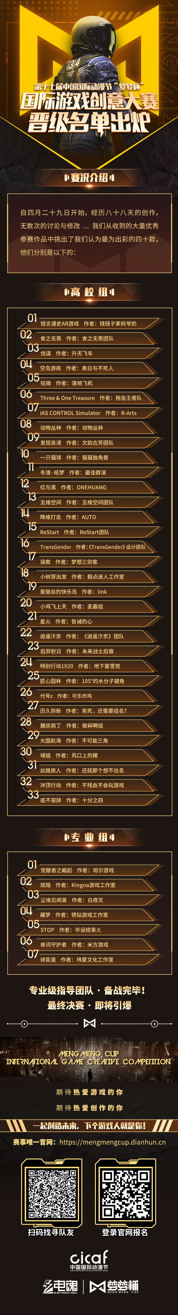 | 由伟德安卓版下载官网安装执委会办公室主办, 杭州伟德安卓版下载官网安装会展有限公司、 杭州电魂网络科技股份有限公司承办的 第十七届伟德安卓版下载官网安装 “梦梦杯”国际游戏创意大赛 复赛名单出炉啦! 一起康康是哪些选手 在本次初赛评选中脱颖而出👇