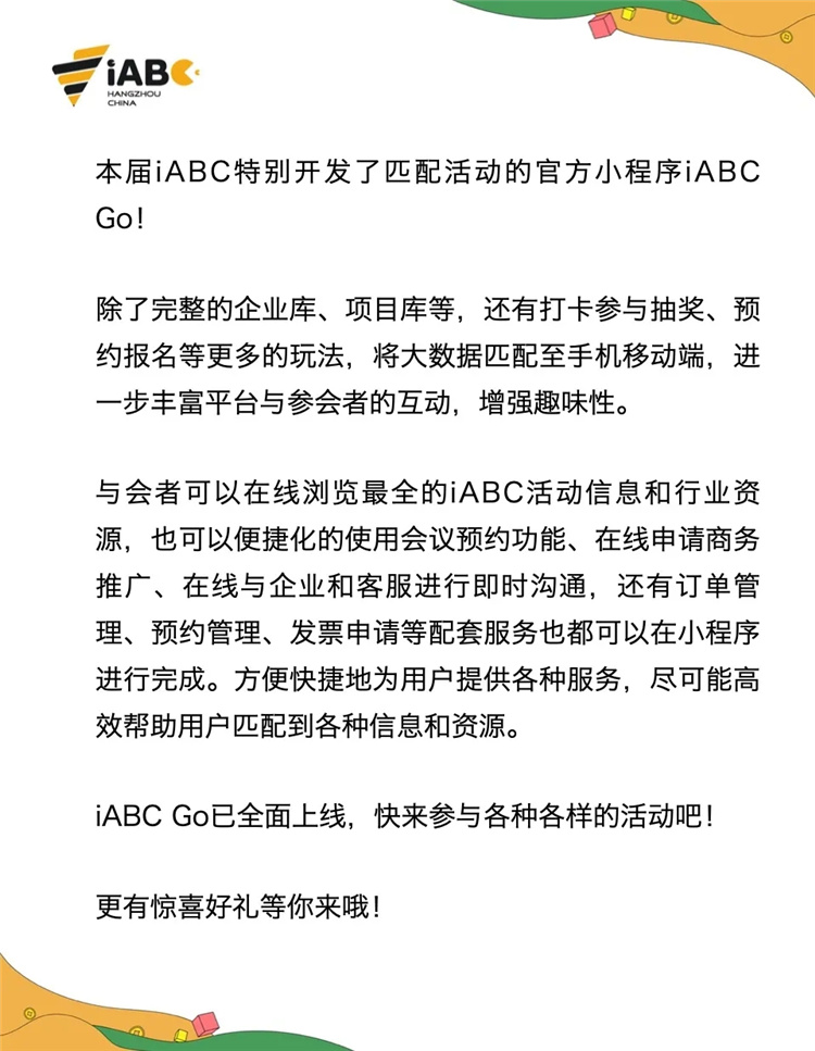 iABC小程序上线!有一站式服务,更有丰厚奖品! |