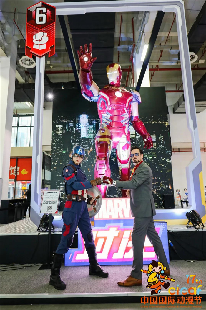钢铁侠、美国队长、黑寡妇和Q版蜘蛛侠 也纷纷来到现场助阵↓