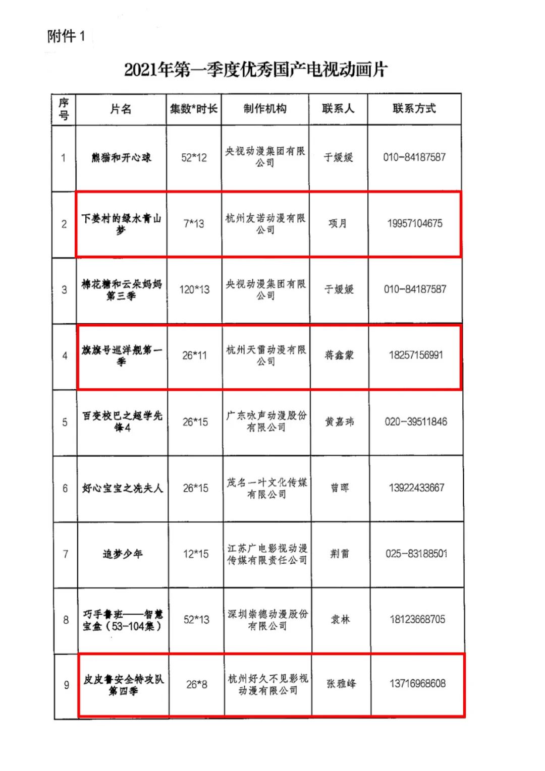 第一、二季度杭产动画获国家广电总局推优数持平去年全年 |