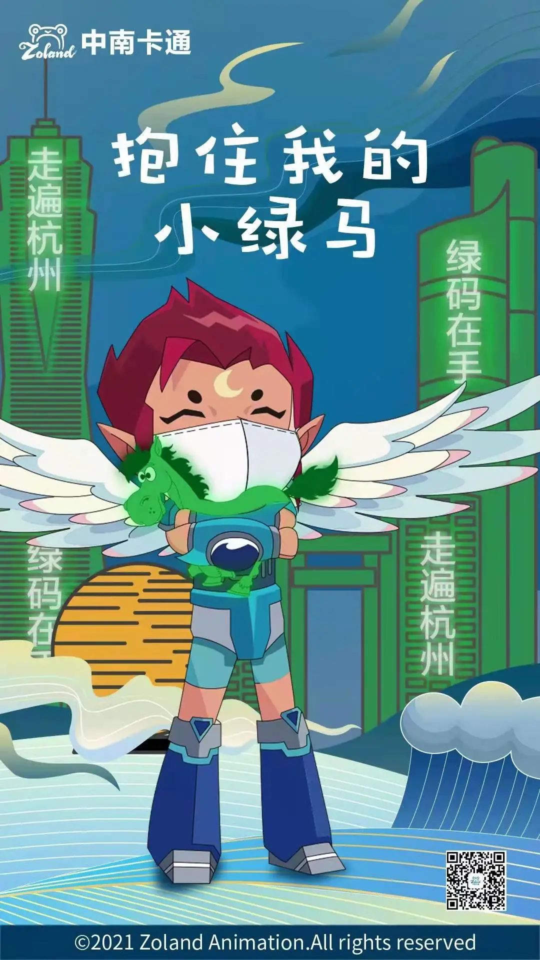 | 近来,面对严峻复杂的疫情防控形势, 杭州市干部群众 齐心协力、守望相助、风雨与共, 全力遏制疫情扩散蔓延态势, 坚决打赢疫情防控遭遇战阻击战。 一些动漫企业、业界人士和动漫爱好者 也纷纷用漫画这一人们喜闻乐见的形式, “定格”一幕幕温暖瞬间, 传递抗疫必胜的坚定信念。 上周国漫君已经推出了一批作品, 今天将继续展示一批作品。 下面,就和国漫君一起 来欣赏这些作品, 从作品中汲取抗疫力量吧! ▽▽▽ 来自中南卡通的天眼 戴着口罩抱着小“绿马” 向大家发出守好绿码的温馨提醒👇