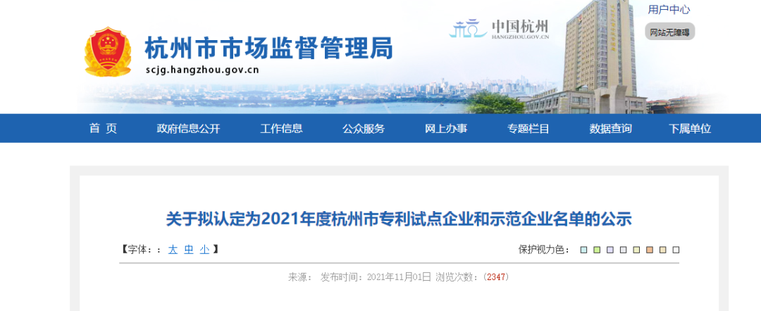 | 2021年11月,根据《关于组织开展2021年度杭州市专利试点企业和示范企业申报工作的通知》(杭市管函〔2021〕105号)等文件精神,经企业申报、区县推荐、专家评审等程序,杭州电魂网络科技股份有限公司(以下简称:电魂网络)被认定为杭州市专利示范企业。