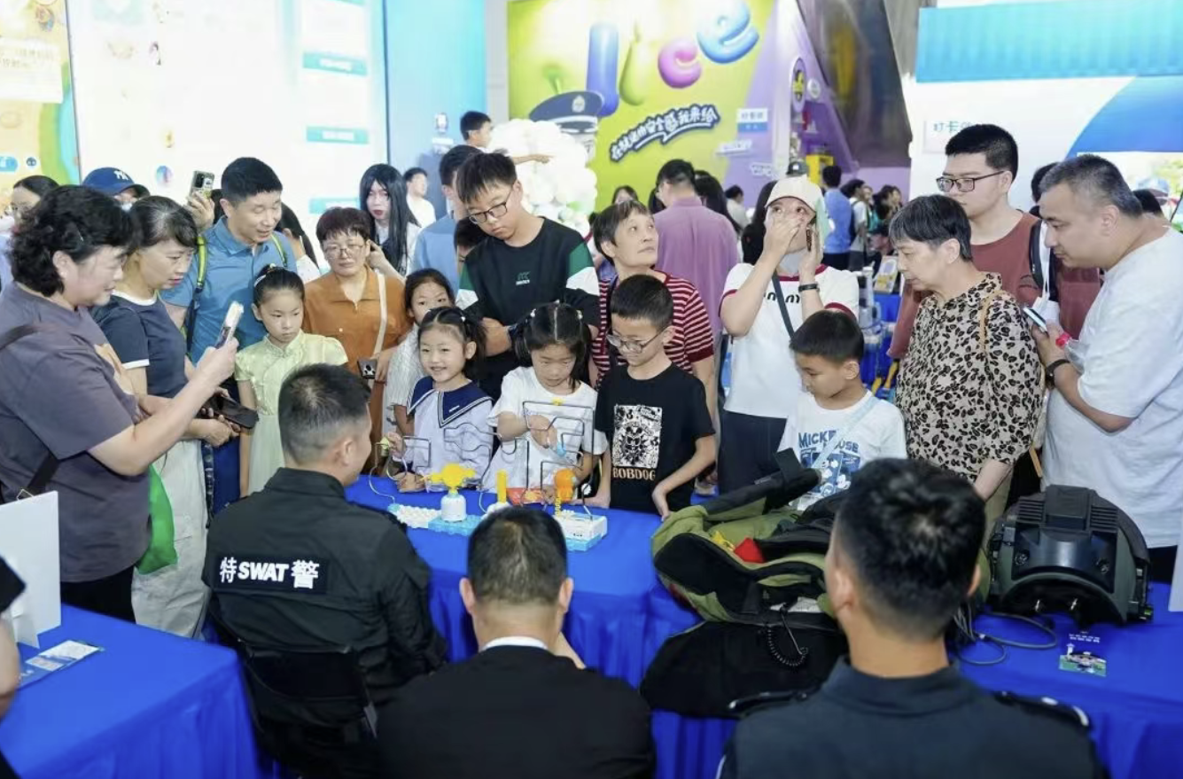 “小飞警”展位 浙江省公安厅机场公安局“小飞警”携爆点玩法亮相,承包你的萌感与安全感。20位机场公安民警化身“小飞警”COSPLAY天团空降现场!萌趣警服+硬核安全知识,从反诈口诀到空防科普,他们用二次元的打开方式,让你笑着学会“防身术”!