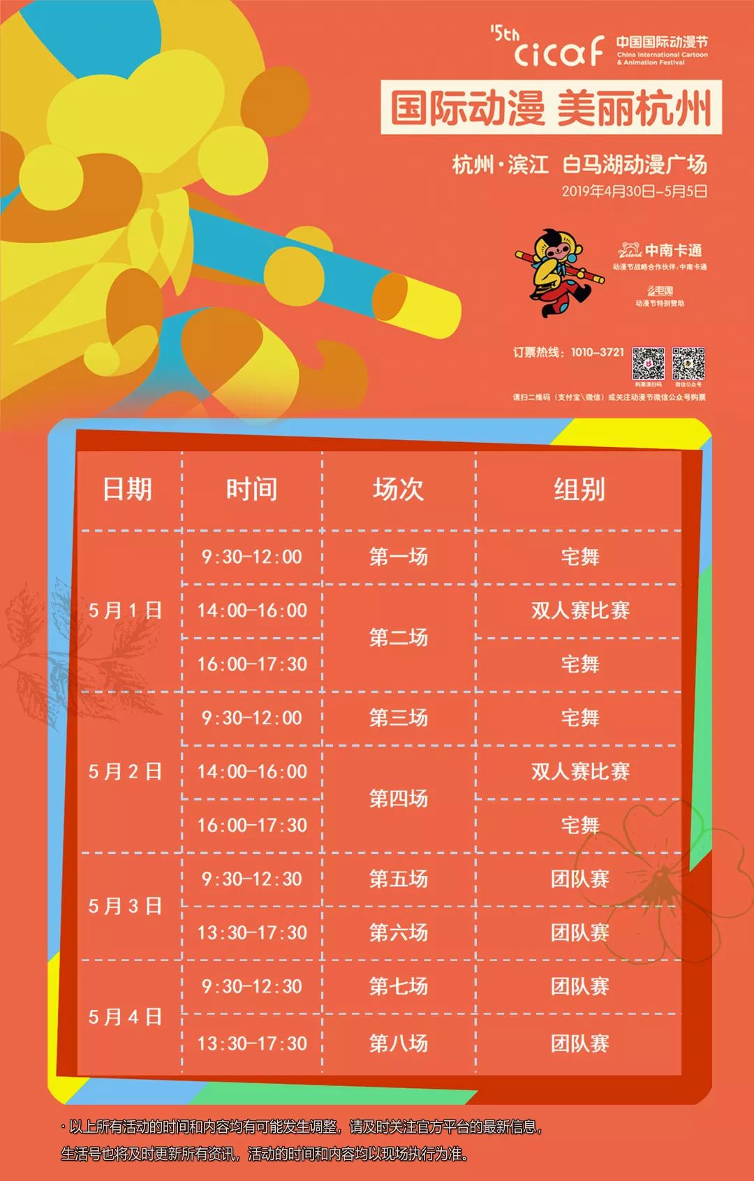 本届中国COSPLAY超级盛典共有设立23个国内分赛区,7个国外分赛区,其中国内分赛区为浙江、北京、山东、山西、黑龙江、甘肃、河北、青海、云南、新疆、重庆、福建、湖北、天津、宁夏、江西、辽宁、安徽、河南、湖南、吉林、江苏、内蒙古;7个国外分赛区,涉及国家荷兰、西班牙、匈牙利、奥地利、法国、瑞士和波兰等。 最重要的问题来了 票怎么买? 4月15日上午10点,第十五届中国COSPLAY超级盛典总决赛门票正式上线发售。 本次总决赛共4天,门票分为单日票和通票两类。单日票仅限单日使用,在购买时需确认日期,票价为50元。通票可在4日中选择一日使用,票价为68元。 所有票均为电子票,现场采用扫码验证方式入场。具体使用规则详见购票页面。 购票方式 1、扫描下图二维码
