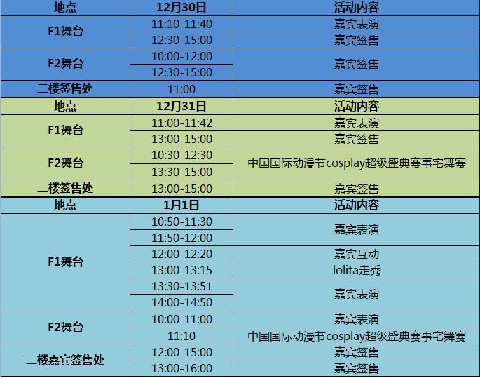 本届文化节以创造二次元文化线下PARTY为目标,策划实施动漫游戏节目秀、现场音乐会、同人作品展示、主题舞台剧等特色活动,让动漫爱好者们有个不一样的跨年体验。