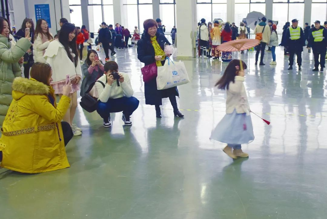 有些COSER带着行头,拖着行李箱,直接奔赴现场,化着美丽“冻”人的妆;有些小姐姐才幼儿班,全家兴致勃勃地赶来。