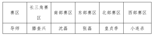 设立东部赛区(青岛)、西部赛区(宜宾)、南部赛区(广州)、北部赛区(长春)、长三角赛区(上海)五个赛区,每个赛区配备一名“专业导师”,导师由执委会办公室统一指派,主导五大赛区赛事评选工作,参赛选手可根据自己的情况选择相应赛区、赛道报名参赛,不可跨赛区报名,不得重复报名。